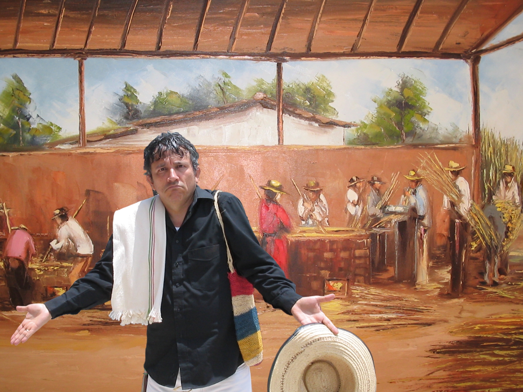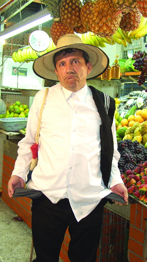 ÓSCAR HUMBERTO GÓMEZ GÓMEZ COMO “EL CAMPESINO EMBEJUCAO”. [Fotografía: Reynaldo Navarro. 2004. Locación: Plaza de Mercado Central de Bucaramanga].