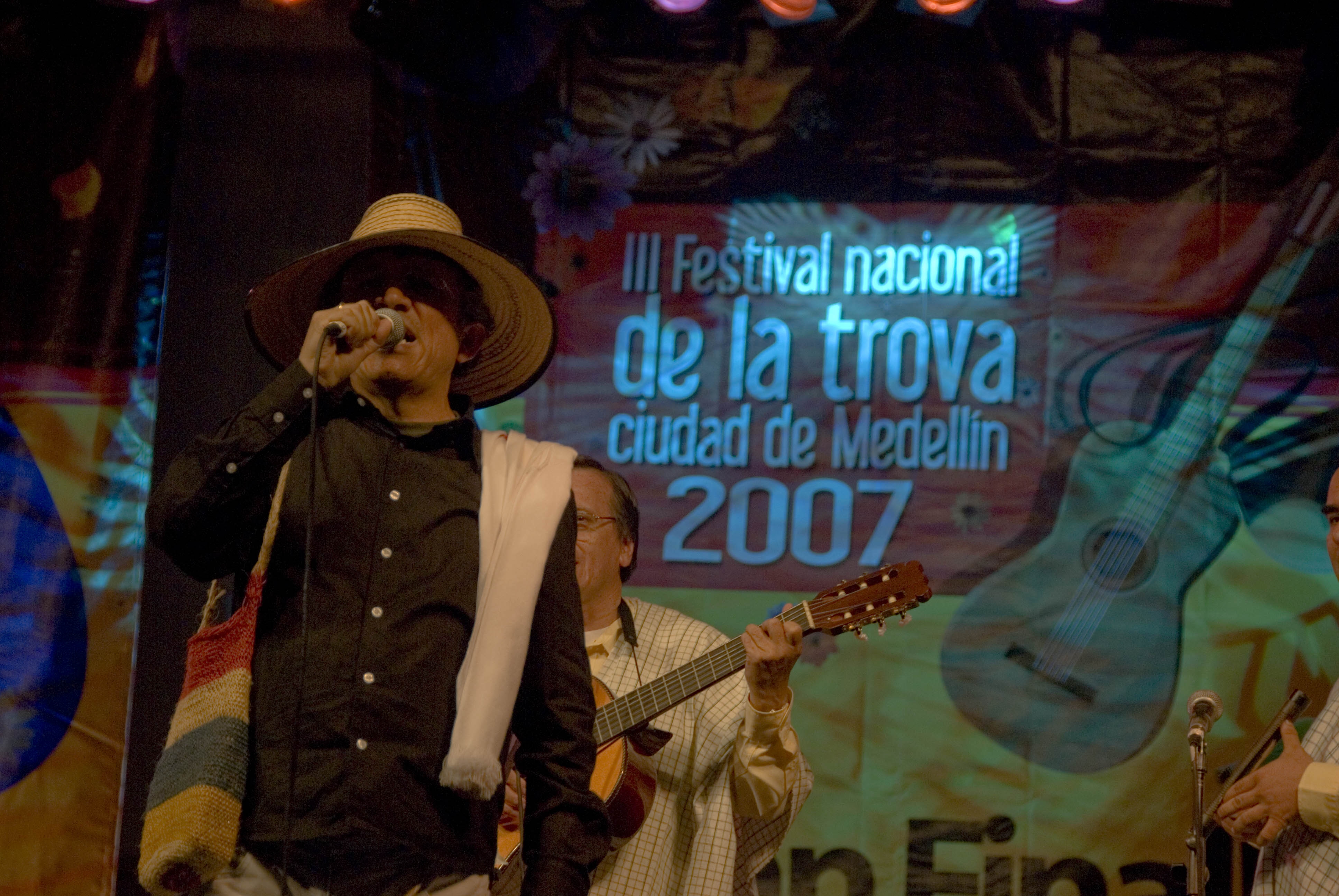 ÓSCAR HUMBERTO GÓMEZ GÓMEZ COMO “EL CAMPESINO EMBEJUCAO”, EN EL CIERRE DE LA FERIA DE LAS FLORES DE MEDELLÍN, UNA DE LAS ESCASAS PRESENTACIONES QUE LE PERMITIÓ SU TRABAJO PROFESIONAL DE ABOGADO.